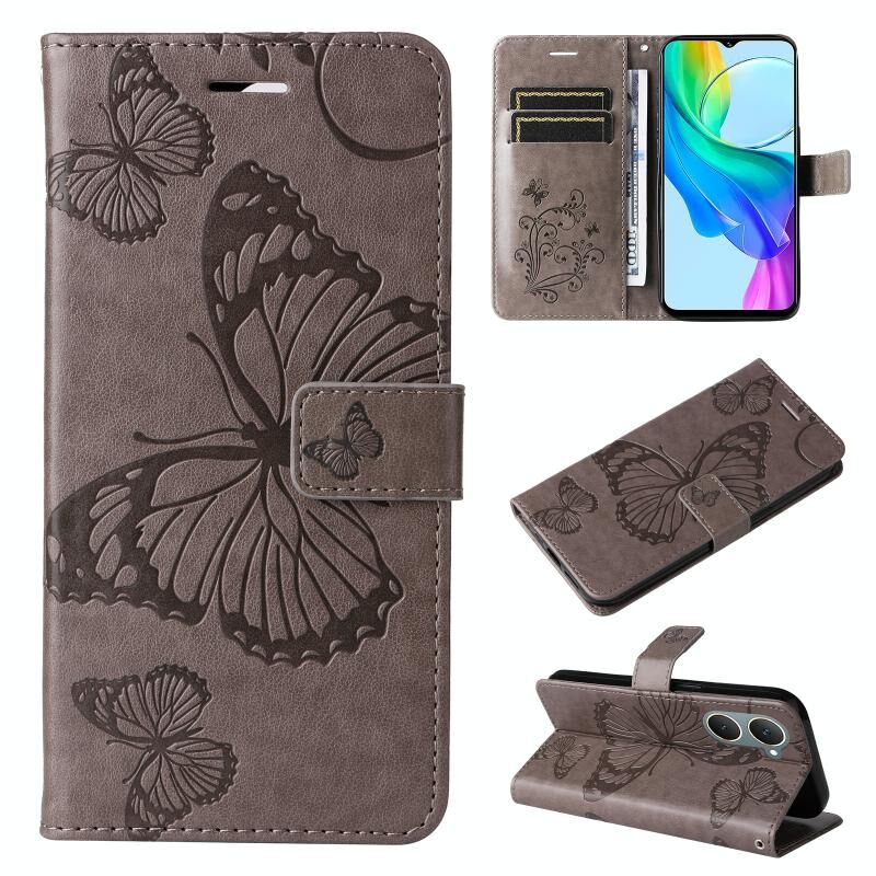 Για vivo Y03 3D πεταλούδα ανάγλυφο μοτίβο Flip υπόθεση τηλεφώνου δέρμα (Γκρι)