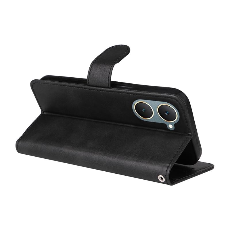 Θήκη τηλεφώνου για vivo Y03 4G, κλασική δερμάτινη με υφή μοσχαριού, τύπου flip (Μπλε)