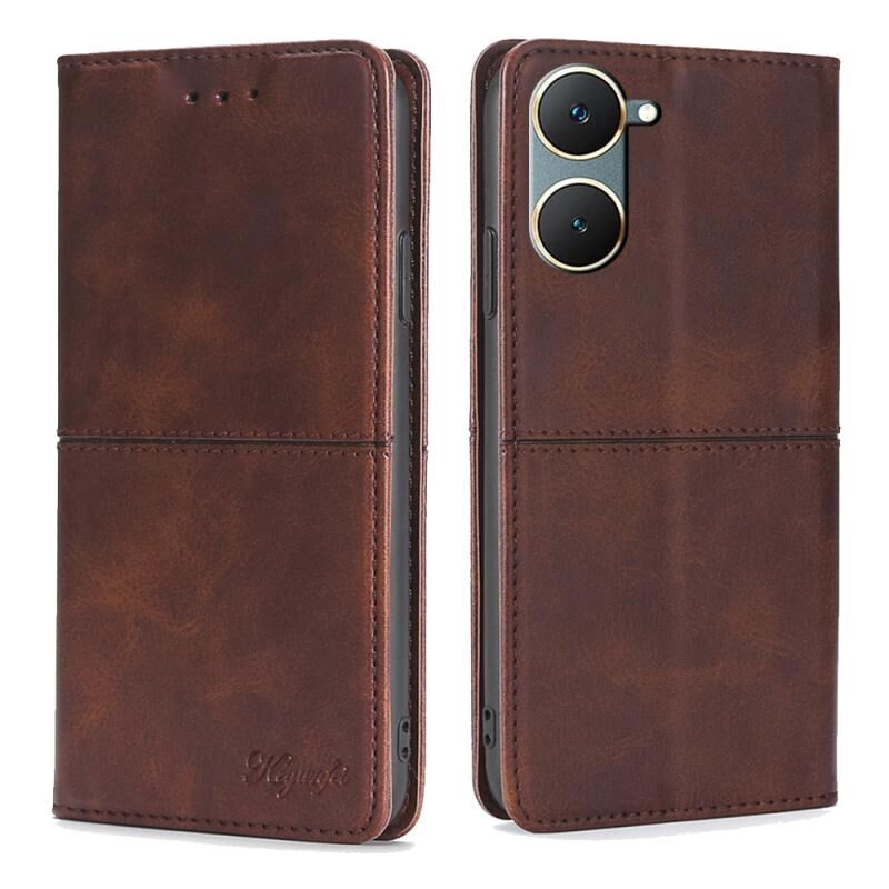 Για vivo Y03 4G Cow Texture Μαγνητική υπόθεση τηλεφώνου από δέρμα (σκούρο καφέ)