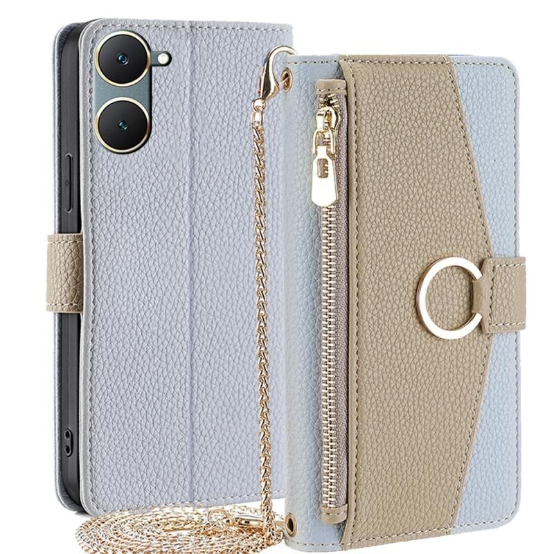 Θήκη τηλεφώνου για vivo Y03 4G, δερμάτινη με υφή λύτσι, χιαστί (Μπλε)