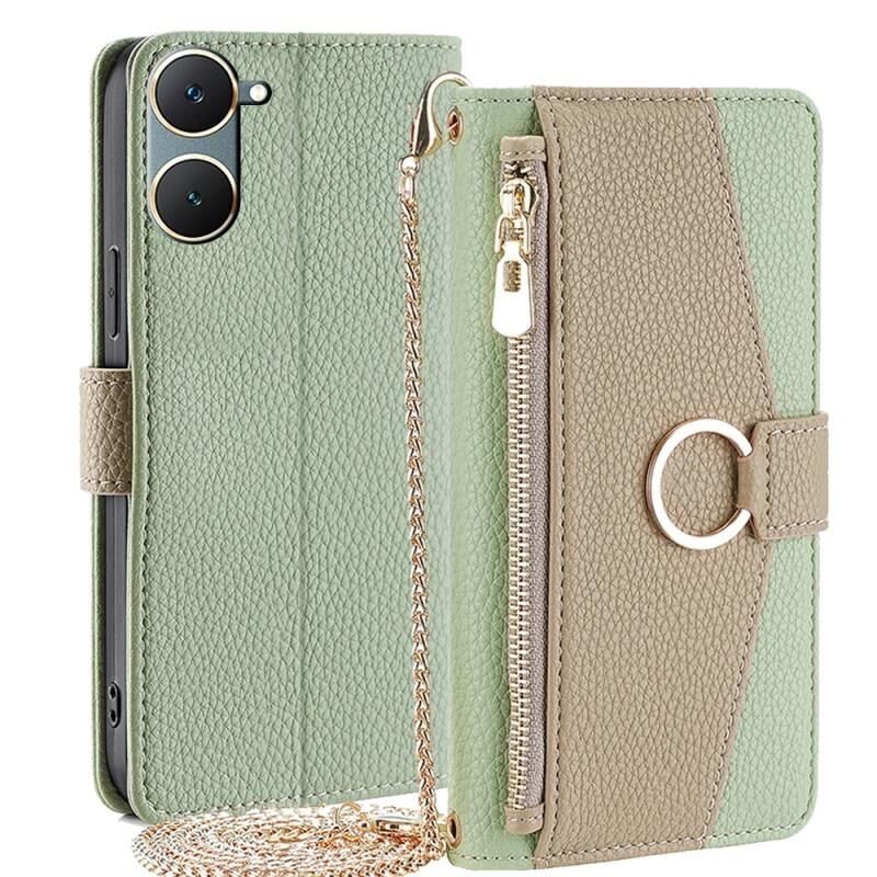 Θήκη τηλεφώνου για vivo Y03 4G, δερμάτινη με υφή λύτσι, χιαστί (πράσινο)
