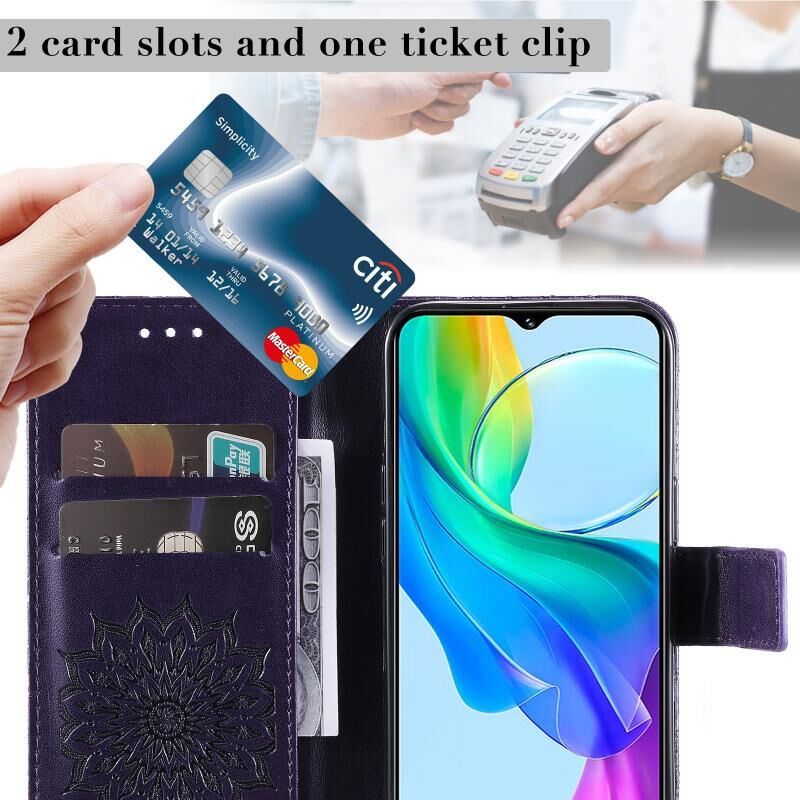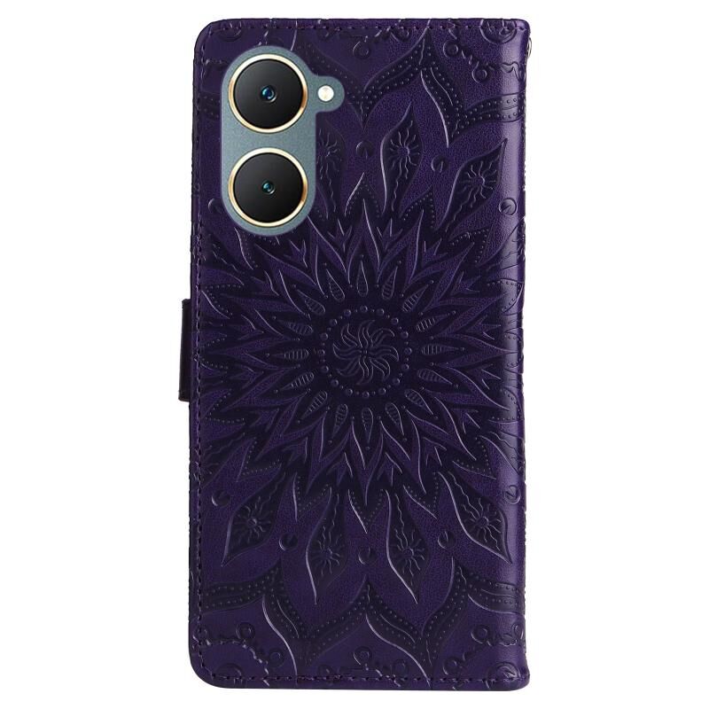 Για το vivo Y03 4G ανάγλυφο ηλιοτρόπιο μοτίβο Flip υπόθεση τηλεφώνου δέρμα (μωβ)