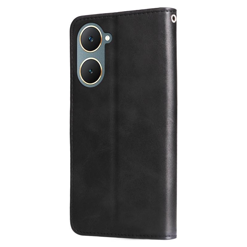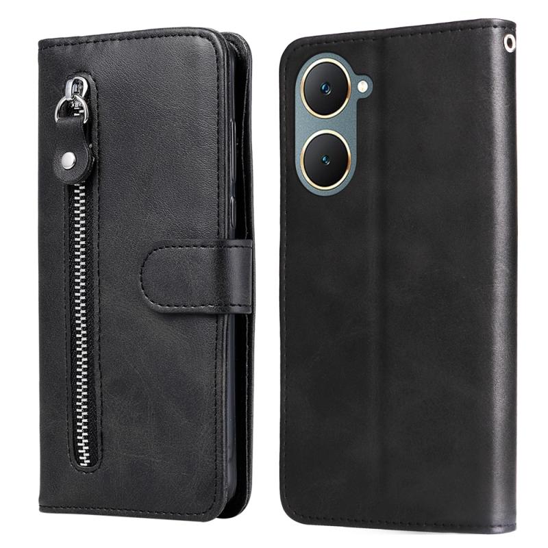 Θήκη τηλεφώνου από δέρμα με υφή μοσχαριού και φερμουάρ για vivo Y03 4G (Χρυσό ροζ)