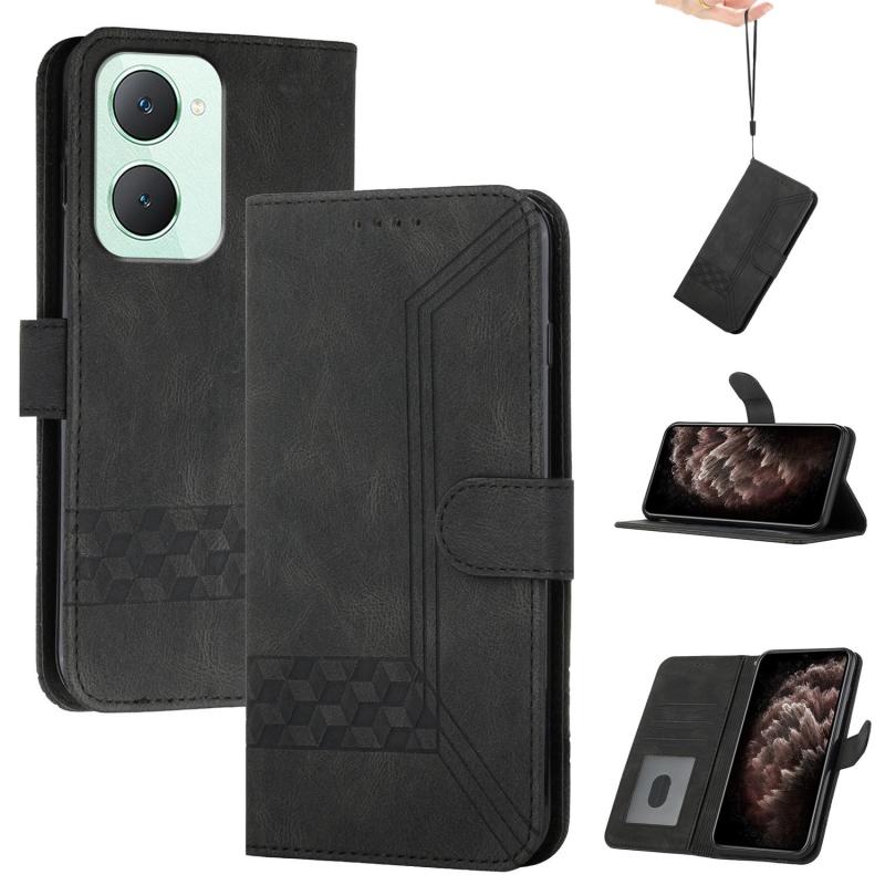 For vivo Y03 4G Global Cubic Skin Feel Flip Leather Phone Case(Black)