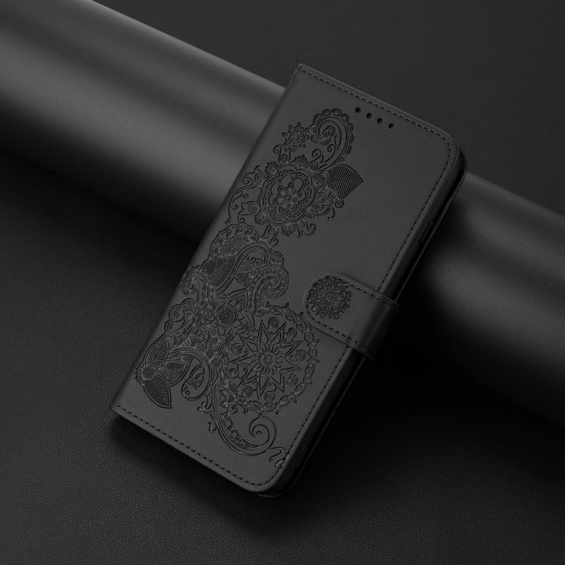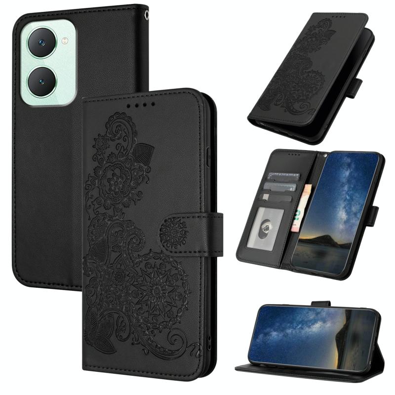 For vivo Y03 4G Global Datura Flower Embossed Flip Leather Phone Case(Black)
