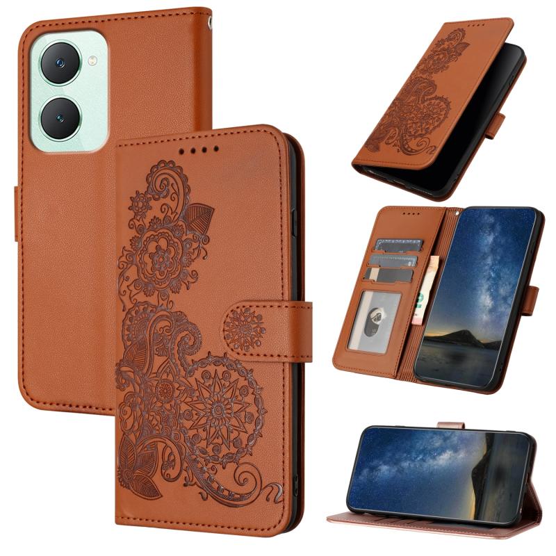 For vivo Y03 4G Global Datura Flower Embossed Flip Leather Phone Case(Brown)