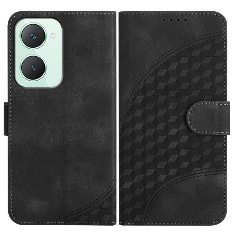 Θήκη δερμάτινη για vivo Y03 4G Global με ανάγλυφο σχέδιο κεφαλής ελέφαντα και κορδόνι (Μαύρο)
