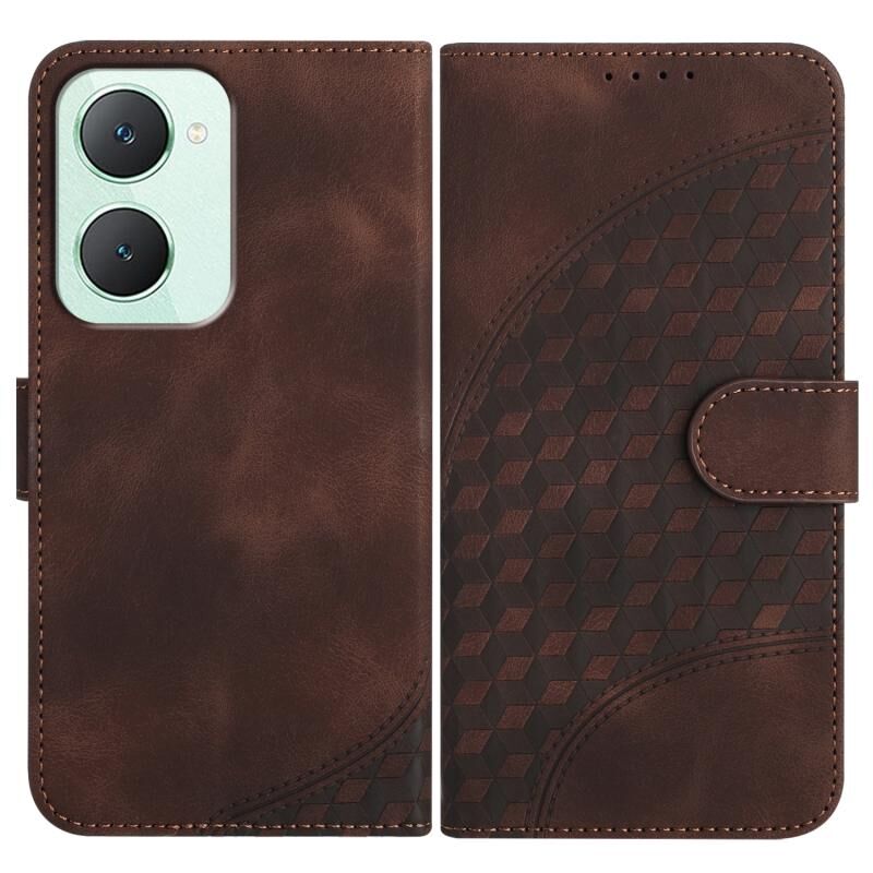 Θήκη δέρματος για vivo Y03 4G Global με ανάγλυφο κεφάλι ελέφαντα και κορδόνι (Καφέ)