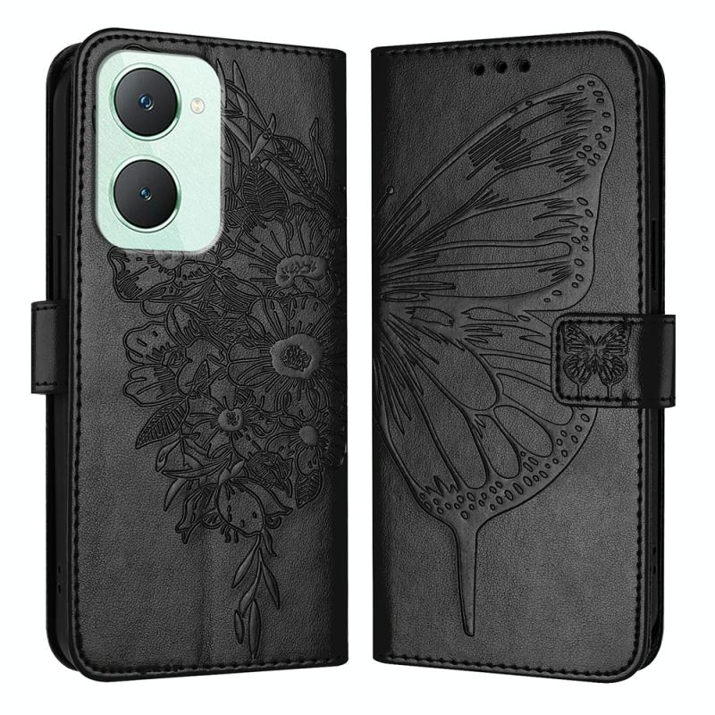 For vivo Y03 4G Global Embossed Butterfly Leather Phone Case(Black)