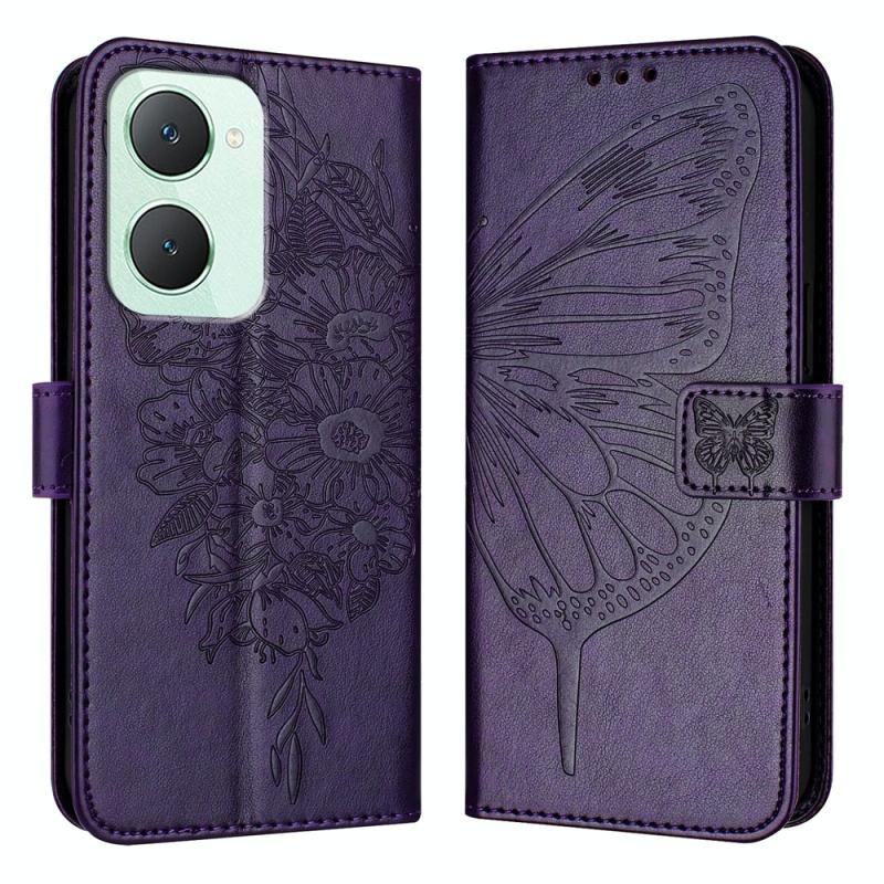 For vivo Y03 4G Global Embossed Butterfly Leather Phone Case(Dark Purple)