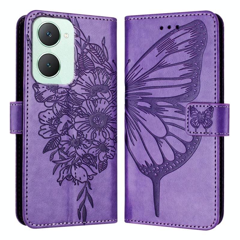 For vivo Y03 4G Global Embossed Butterfly Leather Phone Case(Light Purple)