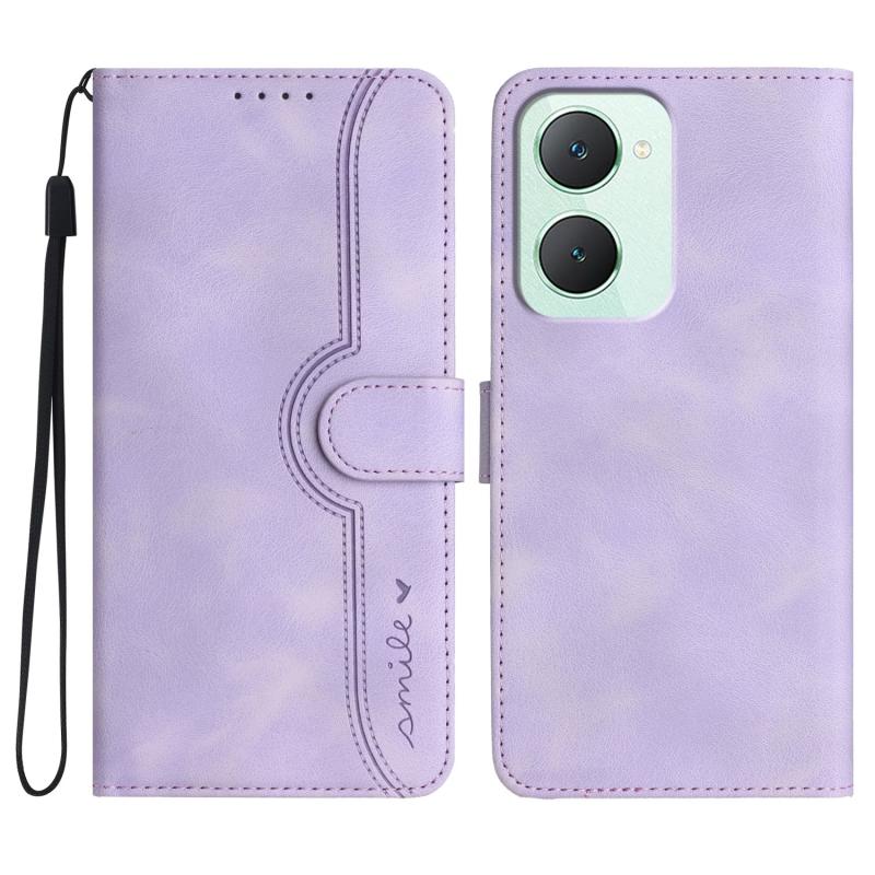 Θήκη τηλεφώνου από δέρμα με υφή καρδιάς για vivo Y03 4G (Καφέ)
