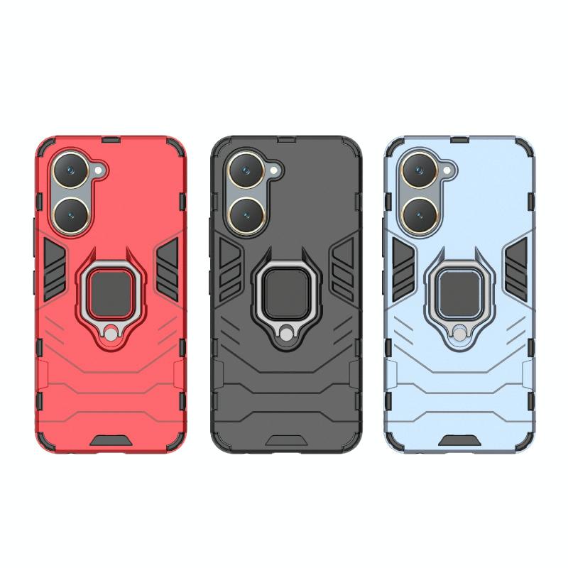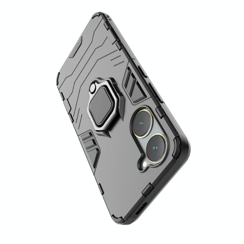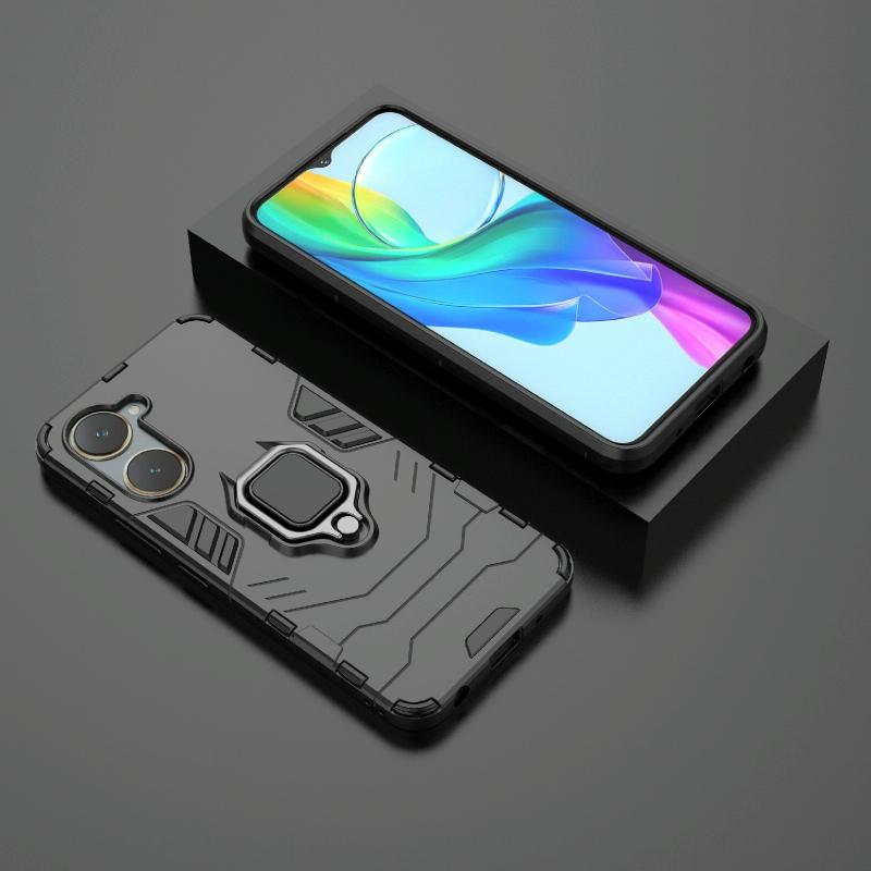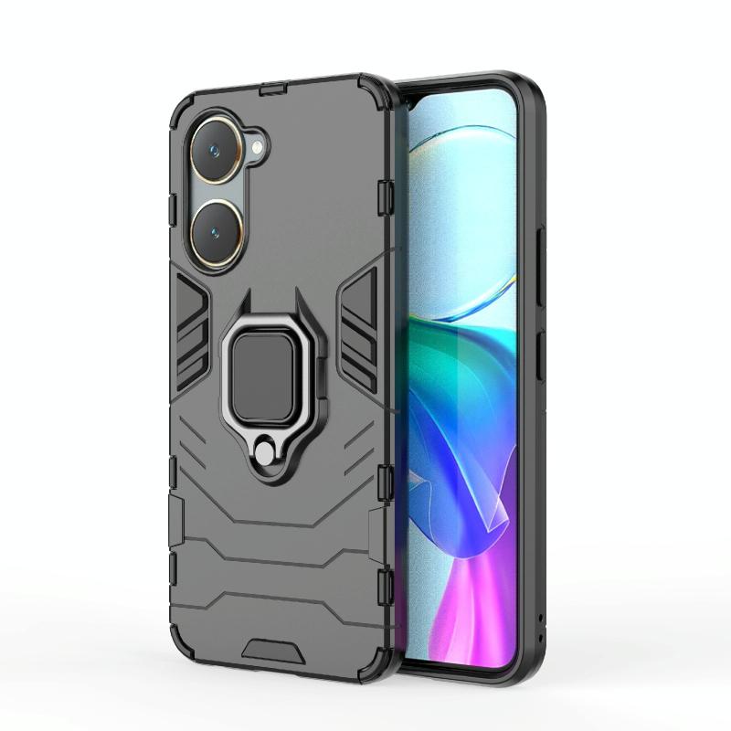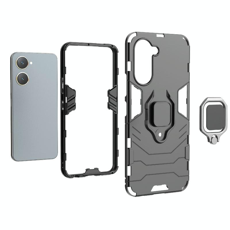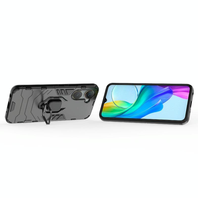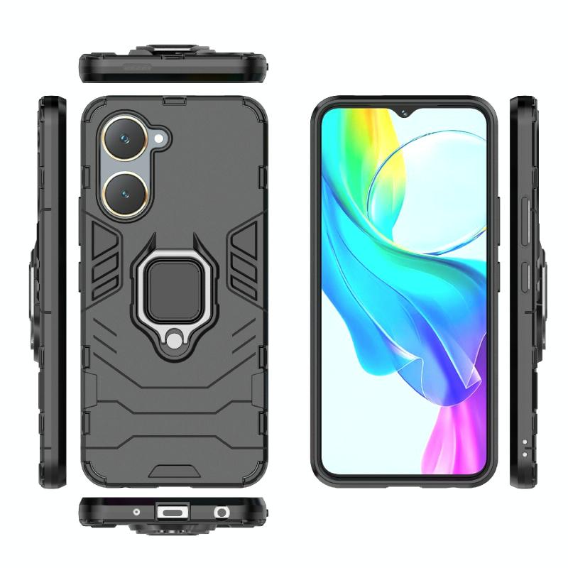 For vivo Y03 4G Global Shockproof PC + TPU Holder Phone Case(Black)
