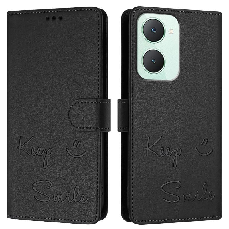 Για vivo Y03 4G Παγκόσμια χαμόγελο ανάγλυφο RFID δερμάτινη θήκη τηλεφώνου (Μαύρο)