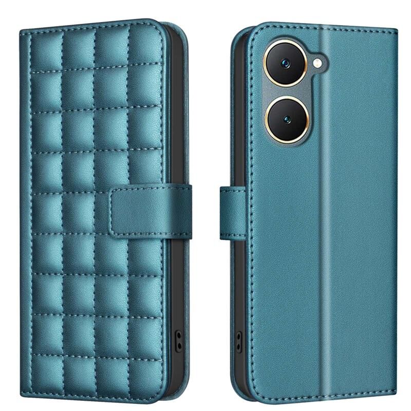 Θήκη τηλεφώνου για vivo Y03 4G, παγκόσμια, με υφή τετραγώνου και δέρμα (Πράσινη)