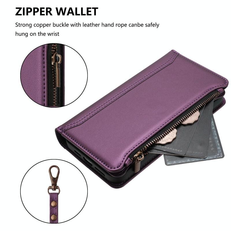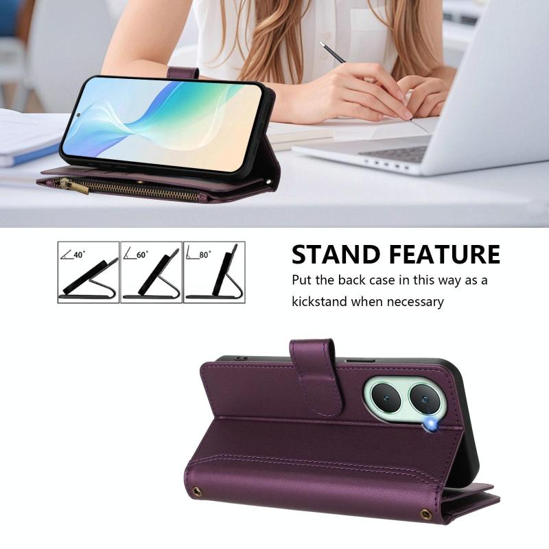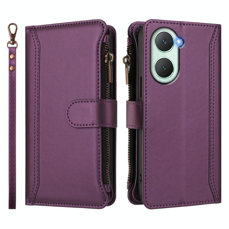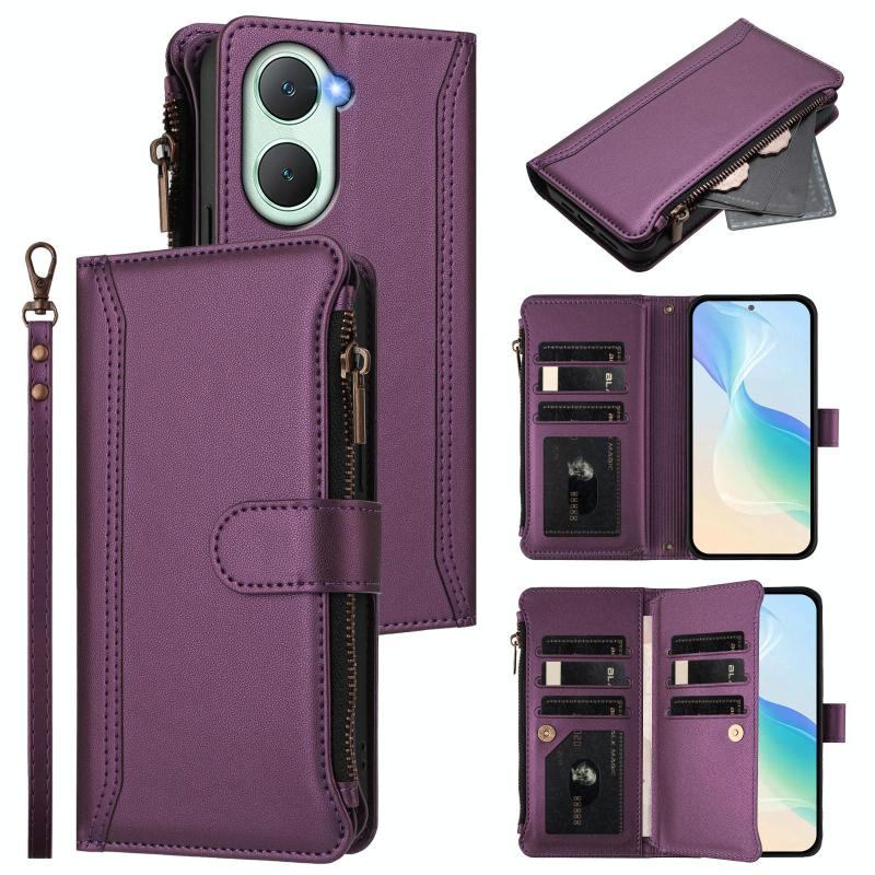 Για vivo Y03 4G Global / Y18 4G Global Μαγνητικό Κλείσιμο 9 Θήκες Καρτών Δερμάτινη Θήκη με Φερμουάρ και Λουρί Χεριού (Σκούρο Μπλε)