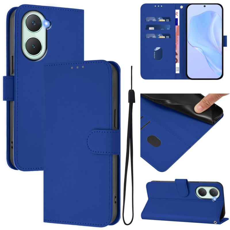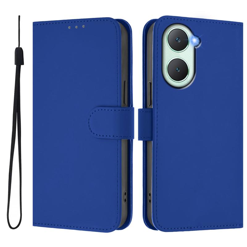 Θήκη τηλεφώνου από δέρμα με συμπαγή χρώματα και αίσθηση δέρματος για vivo Y03 4G Global / Y18 4G με κορδόνι (Καφέ)