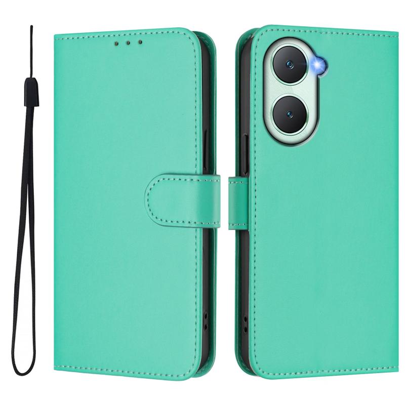 Θήκη τηλεφώνου από δέρμα με συμπαγή χρώματα και αίσθηση δέρματος για vivo Y03 4G Global / Y18 4G με κορδόνι (Καφέ)