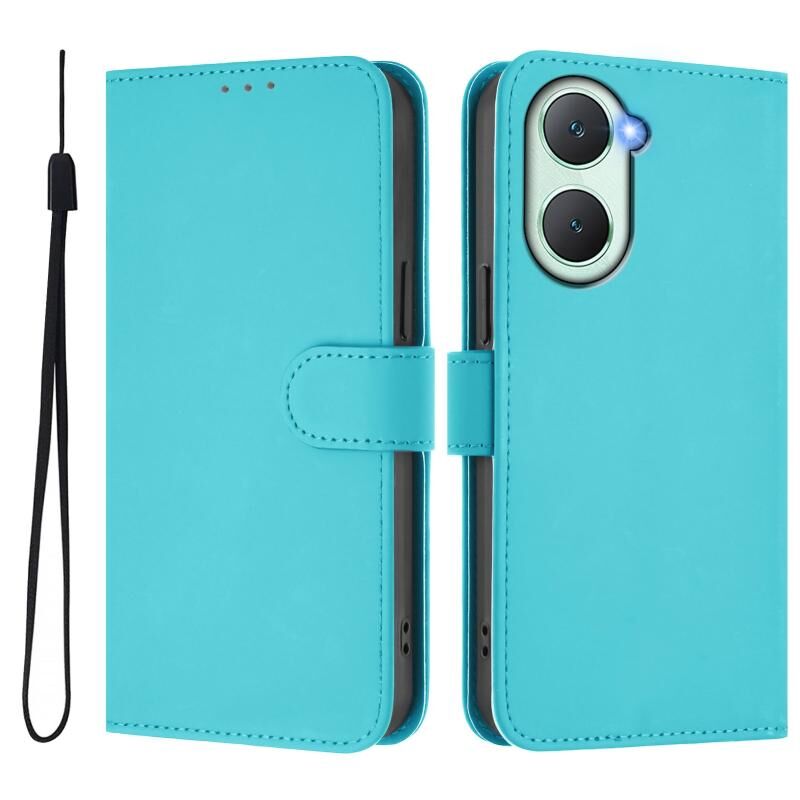 Θήκη τηλεφώνου από δέρμα με συμπαγή χρώματα και αίσθηση δέρματος για vivo Y03 4G Global / Y18 4G με κορδόνι (Καφέ)
