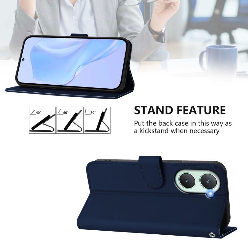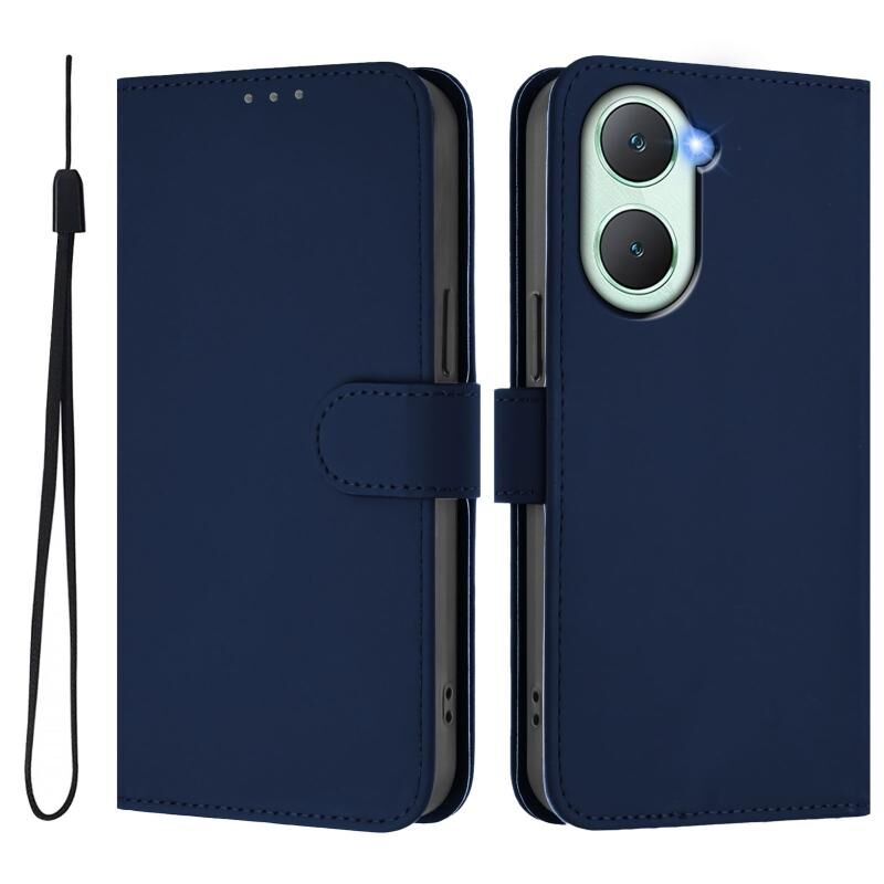 Θήκη τηλεφώνου από δέρμα με συμπαγή χρώματα και αίσθηση δέρματος για vivo Y03 4G Global / Y18 4G με κορδόνι (Καφέ)