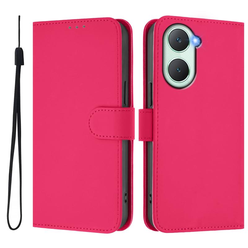 Θήκη τηλεφώνου από δέρμα με συμπαγή χρώματα και αίσθηση δέρματος για vivo Y03 4G Global / Y18 4G με κορδόνι (Καφέ)