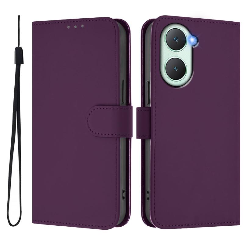 Θήκη τηλεφώνου από δέρμα με συμπαγή χρώματα και αίσθηση δέρματος για vivo Y03 4G Global / Y18 4G με κορδόνι (Βιολετί)