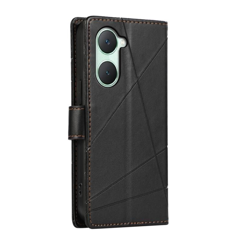 Θήκη τηλεφώνου για vivo Y03 4G από γνήσιο δέρμα PU με ανάγλυφη υφή και γραμμές (Μαύρο)