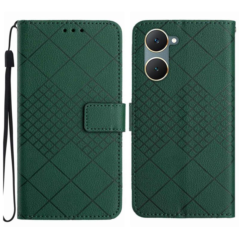 For vivo Y03 4G Rhombic Grid Texture Leather Phone Case(Green)