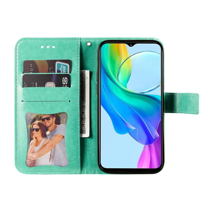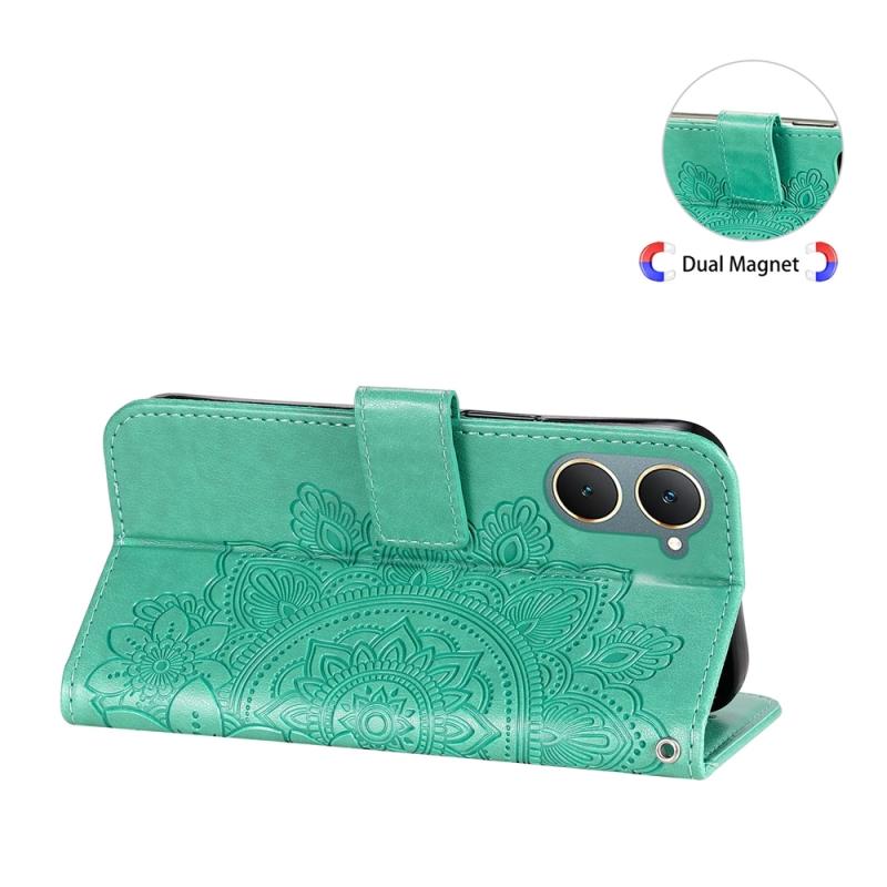 Θήκη τηλεφώνου από δέρμα με ανάγλυφα επτά πέταλα λουλουδιών για vivo Y03 4G (Ανοιχτό Μωβ)