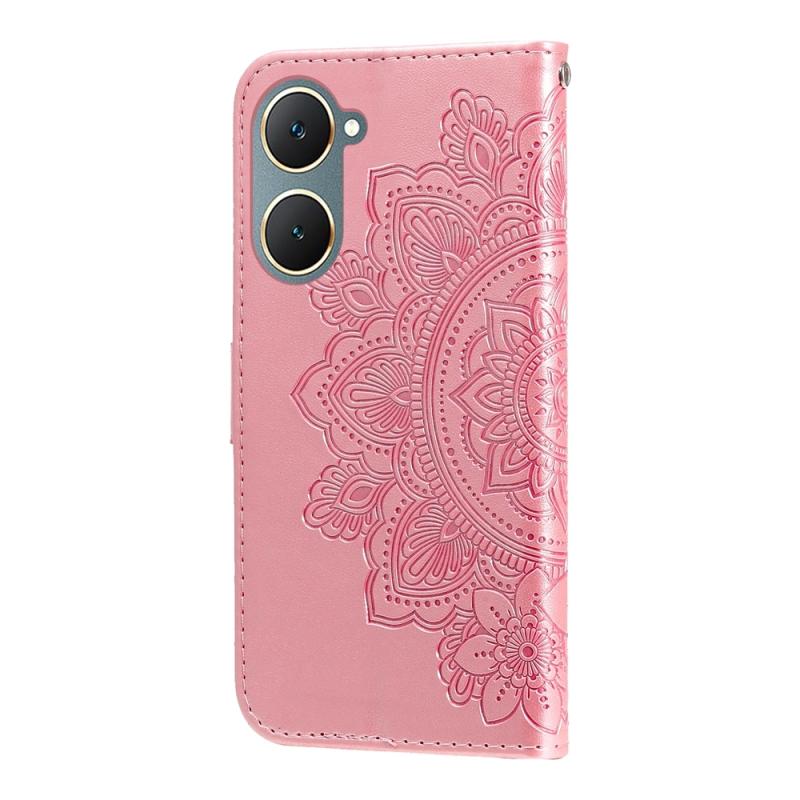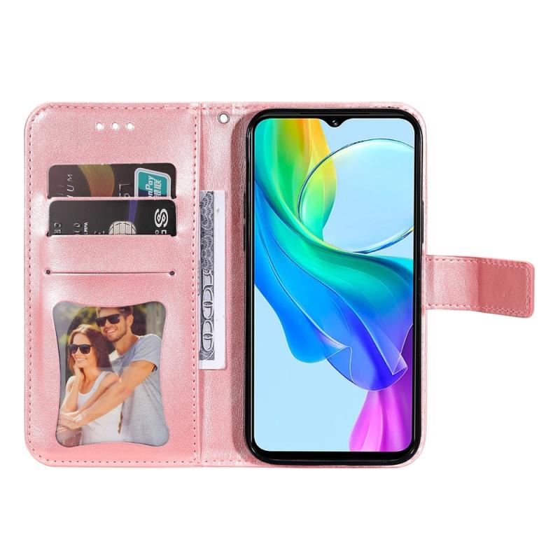 Θήκη τηλεφώνου από δέρμα με ανάγλυφα επτά πέταλα λουλουδιών για vivo Y03 4G (Ανοιχτό Μωβ)
