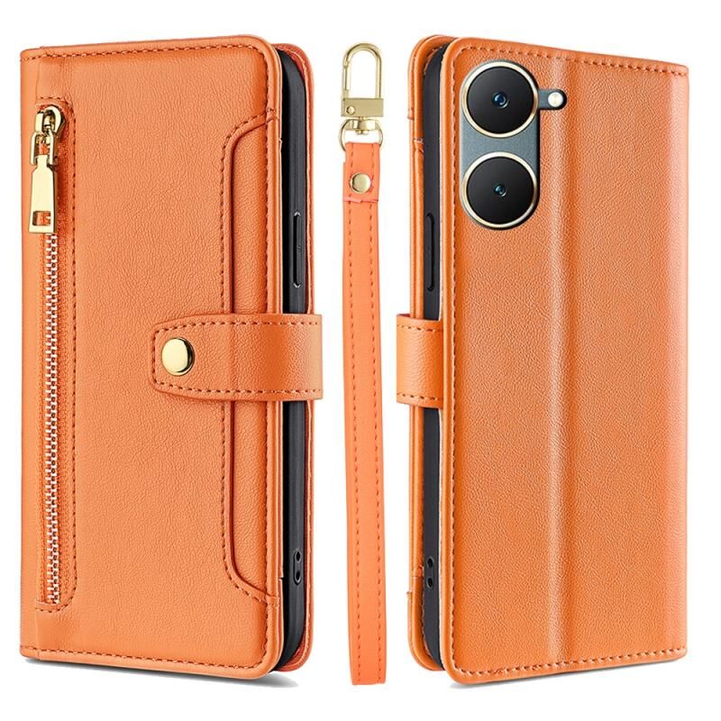 Για vivo Y03 4G Πρόβατα Υφή Cross-σώμα φερμουάρ πορτοφόλι δερμάτινη θήκη τηλεφώνου (Πορτοκαλί)