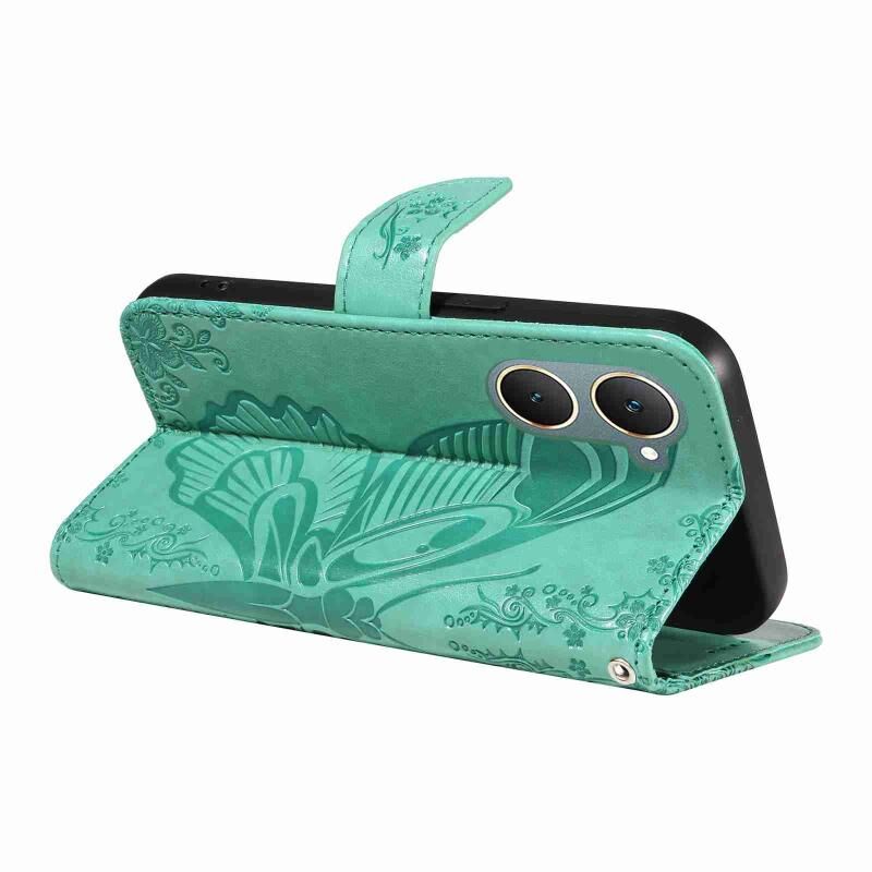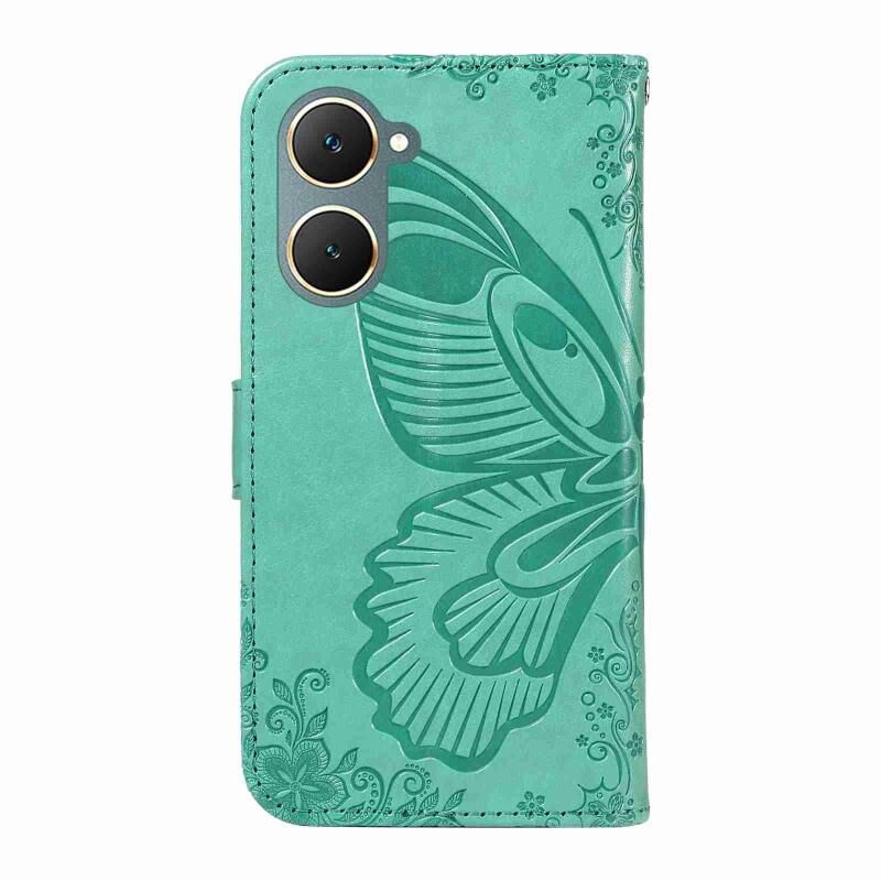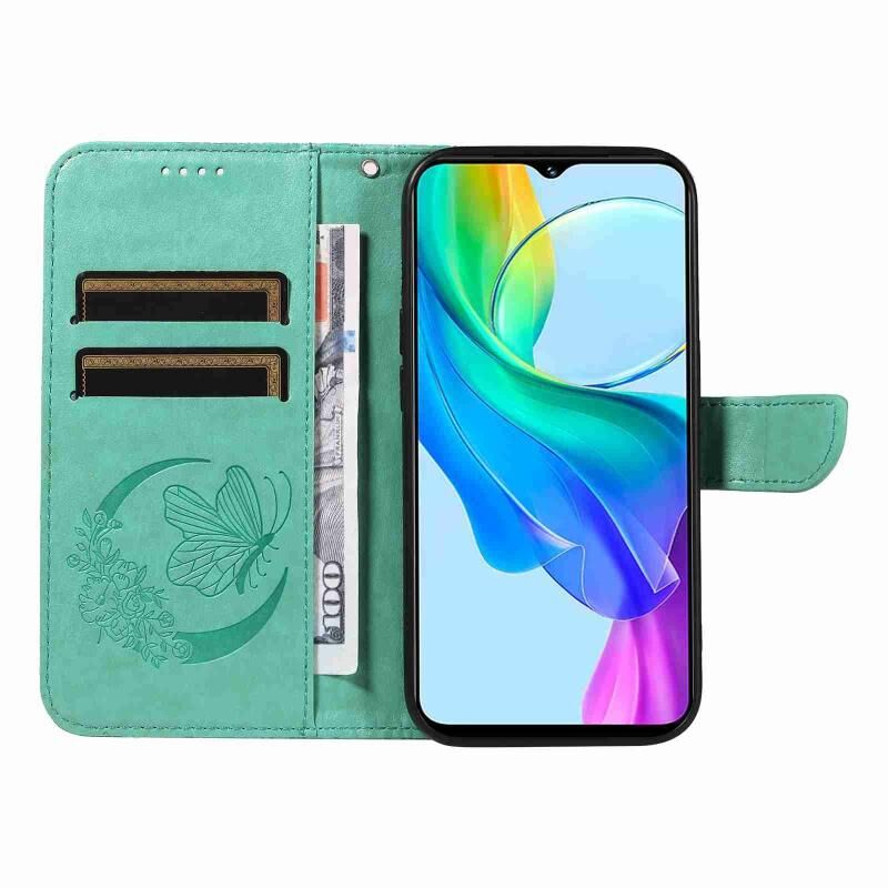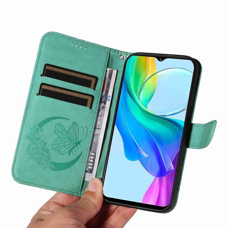 Θήκη τηλεφώνου από δέρμα με ανάγλυφο σχέδιο πεταλούδας για vivo Y03 4G (πράσινο)