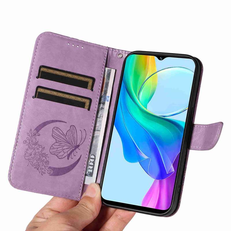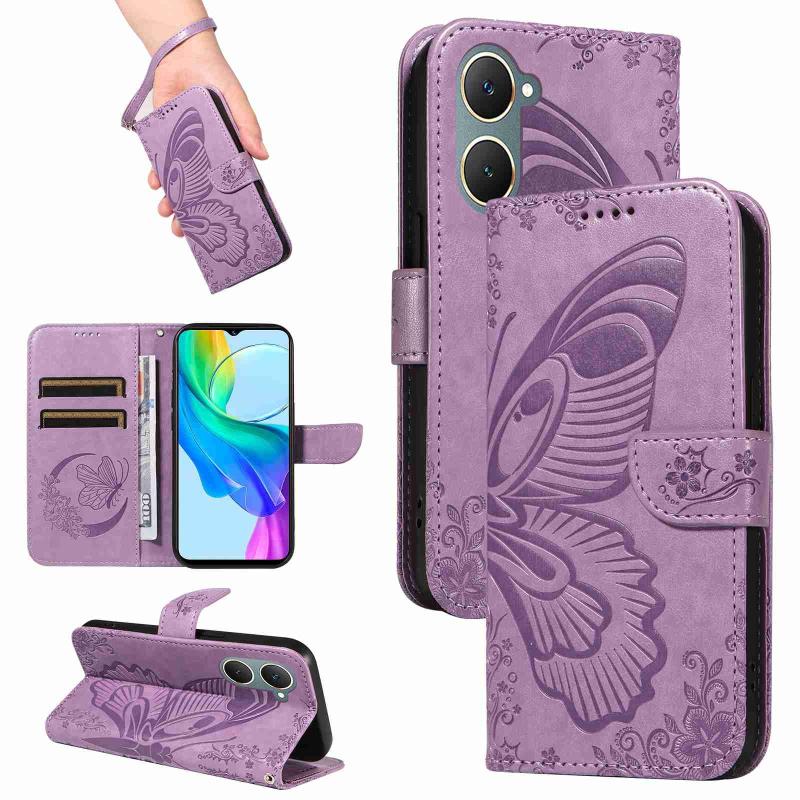 For vivo Y03 4G Swallowtail Butterfly Embossed Leather Phone Case(Purple)