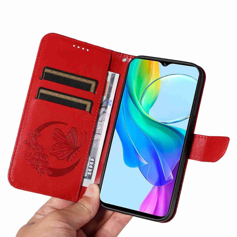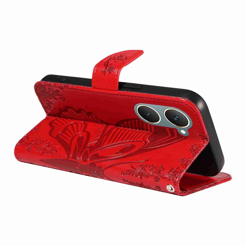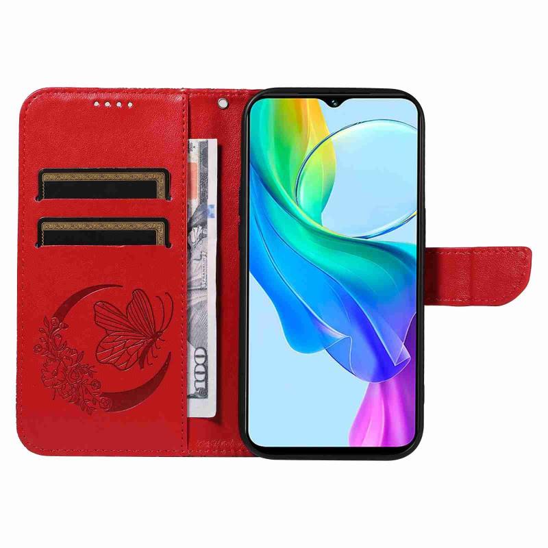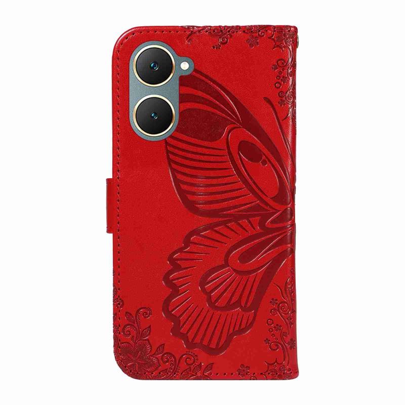 For vivo Y03 4G Swallowtail Butterfly Embossed Leather Phone Case(Red)