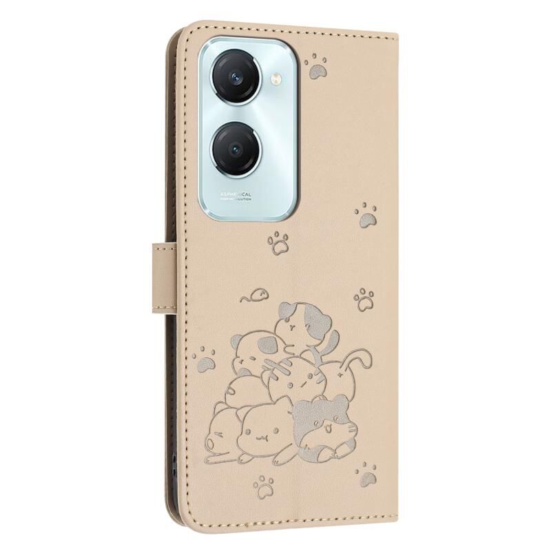 Θήκη δερμάτινη για vivo Y03 4G / Y18 / Y18e με ανάγλυφο σχέδιο γατάκι και κορδόνι (Μπεζ)