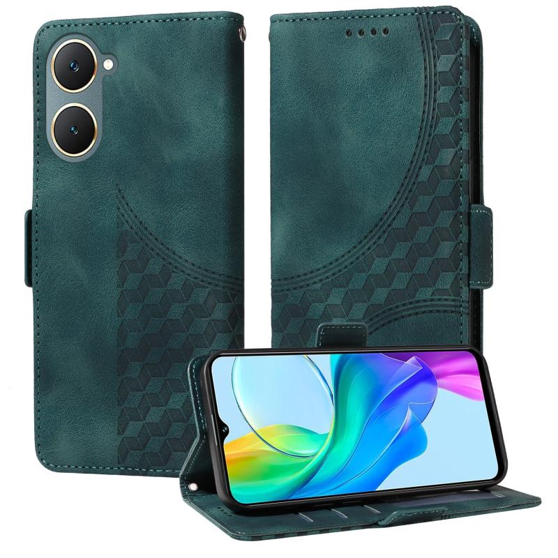 For vivo Y03 4G / Y18 / Y18e Embossed Rhombus Starry Leather Phone Case(Green)