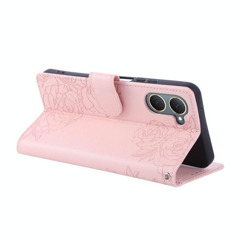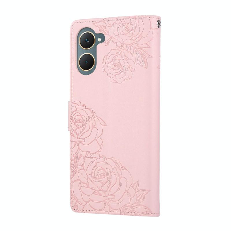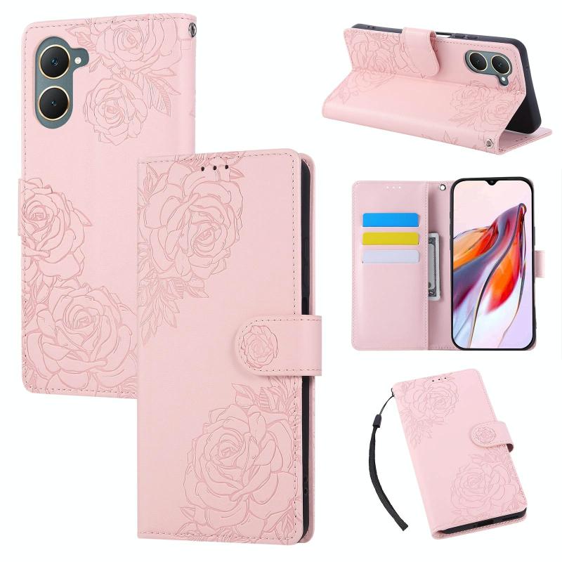 For vivo Y03 4G / Y18 / Y28s Rose Flower Embossed 3-Card Slots Leather Phone Case(Pink)