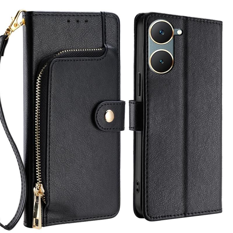 Για vivo Y03 4G φερμουάρ τσάντα δέρμα τηλέφωνο υπόθεση (μαύρο)