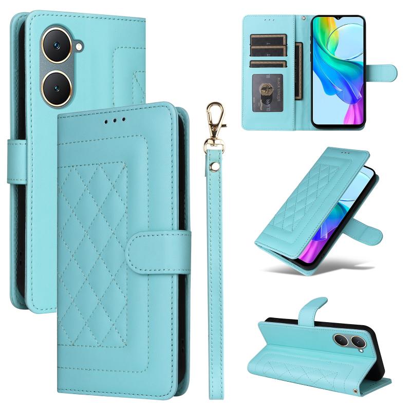 For vivo Y03 Diamond Lattice Leather Flip Phone Case(Mint Green)