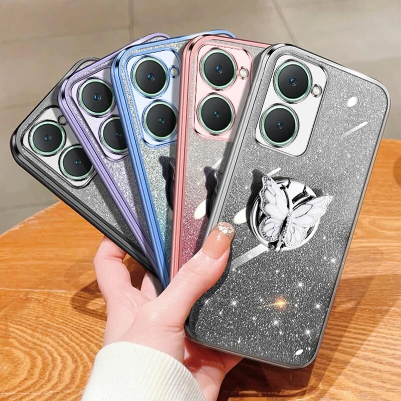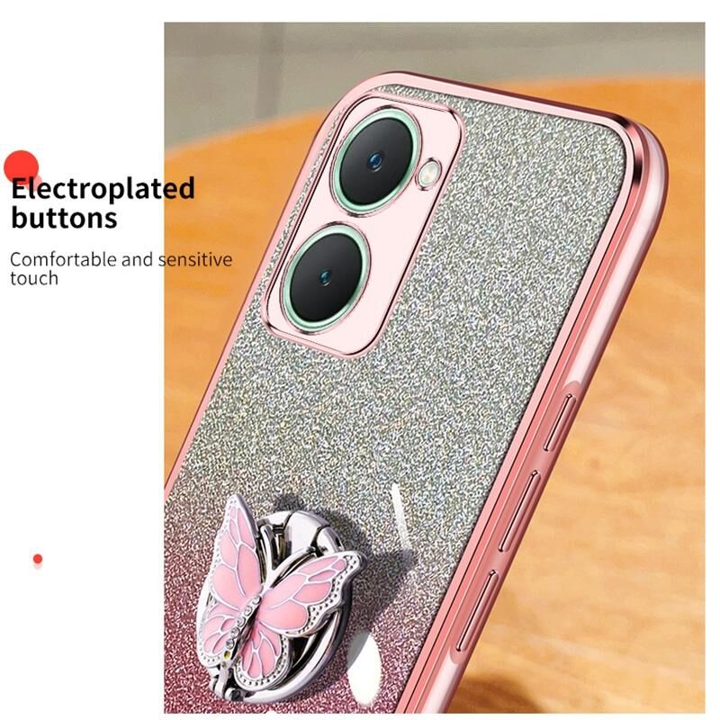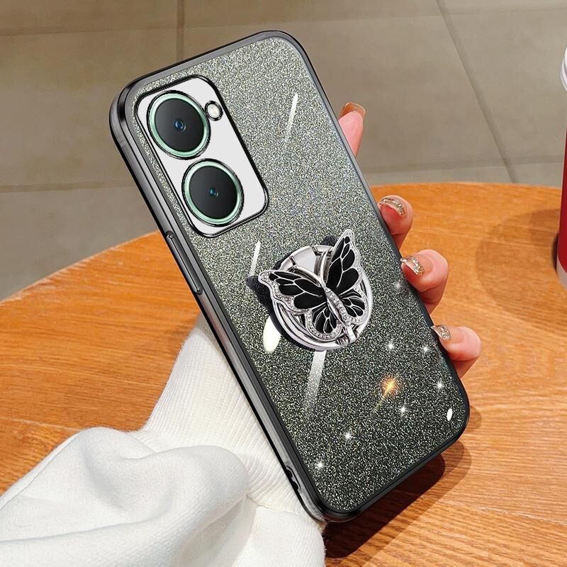 Για vivo Y03 Επιμεταλλωμένο διαβάθμιση Glitter πεταλούδα κάτοχος TPU τηλέφωνο υπόθεση (Μαύρο)
