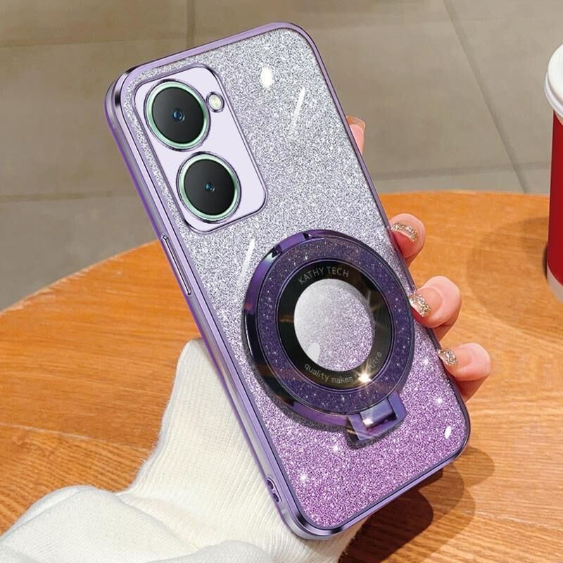 Θήκη τηλεφώνου TPU για vivo Y03 με επιμετάλλωση, διαβαθμισμένη λάμψη, στρογγυλή βάση (Ροζ)