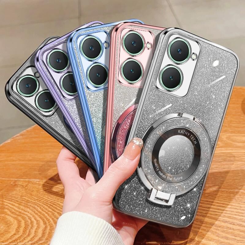 Θήκη τηλεφώνου TPU για vivo Y03 με επιμετάλλωση, διαβαθμισμένη λάμψη, στρογγυλή βάση (Ροζ)