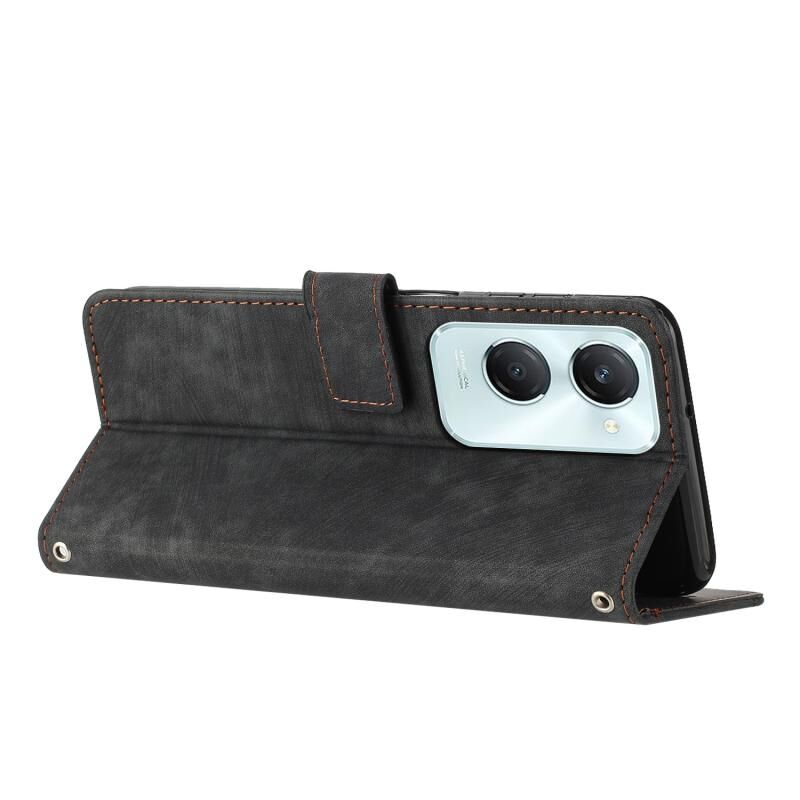 Θήκη τηλεφώνου από δέρμα με υφή και ραβδωτό σχέδιο για vivo Y03 / Y18 / Y18e με κορδόνι (Μαύρο)