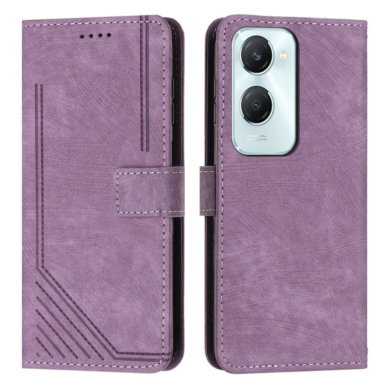 For vivo Y03 / Y18 / Y18e Skin Feel Stripe Pattern Leather Phone Case with Lanyard(Purple)