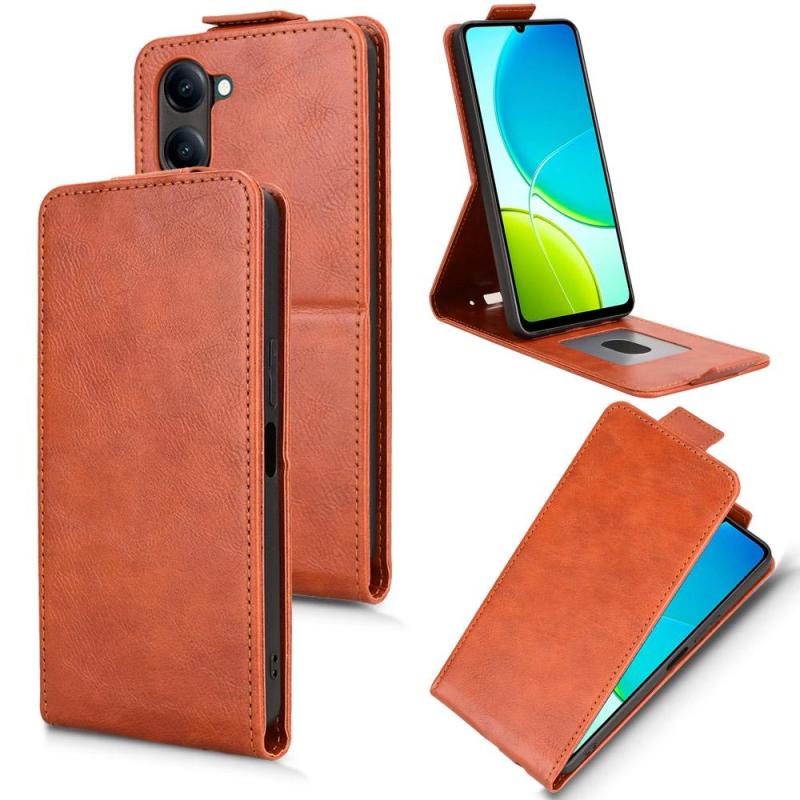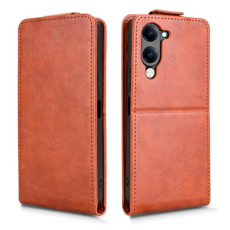 For vivo Y04 4G / Y29s 5G Magnetic Vertical Flip Leather Phone Case with Buckle(Brown)