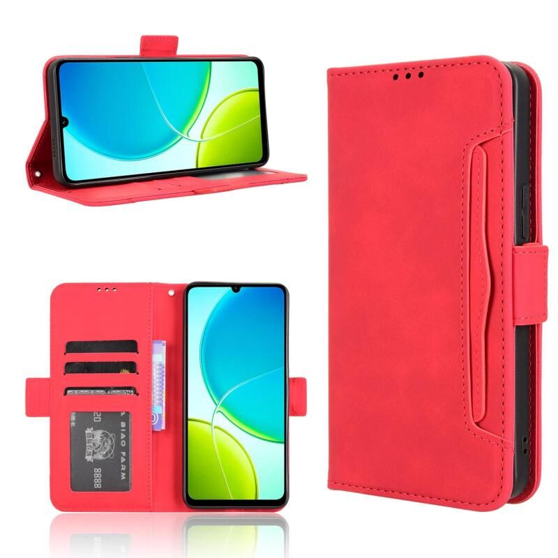 Θήκη τηλεφώνου από δέρμα με υφή μοσχαριού και θήκες καρτών για vivo Y04 4G / Y29s 5G (Ροζ)