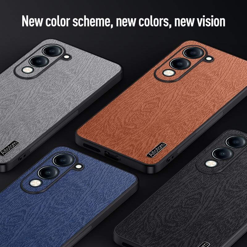 Θήκη κινητού τηλεφώνου για vivo Y04 Tree Bark Leather Shockproof (Μπλε)