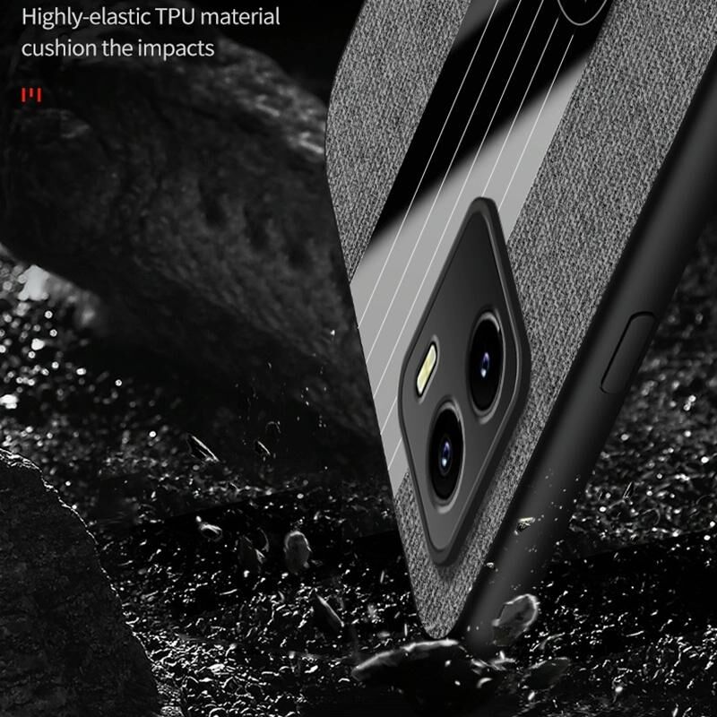 Για vivo Y10 XINLI ραφή ύφασμα Textue TPU τηλέφωνο υπόθεση με κάτοχο δαχτυλίδι (γκρι) (XINLI)