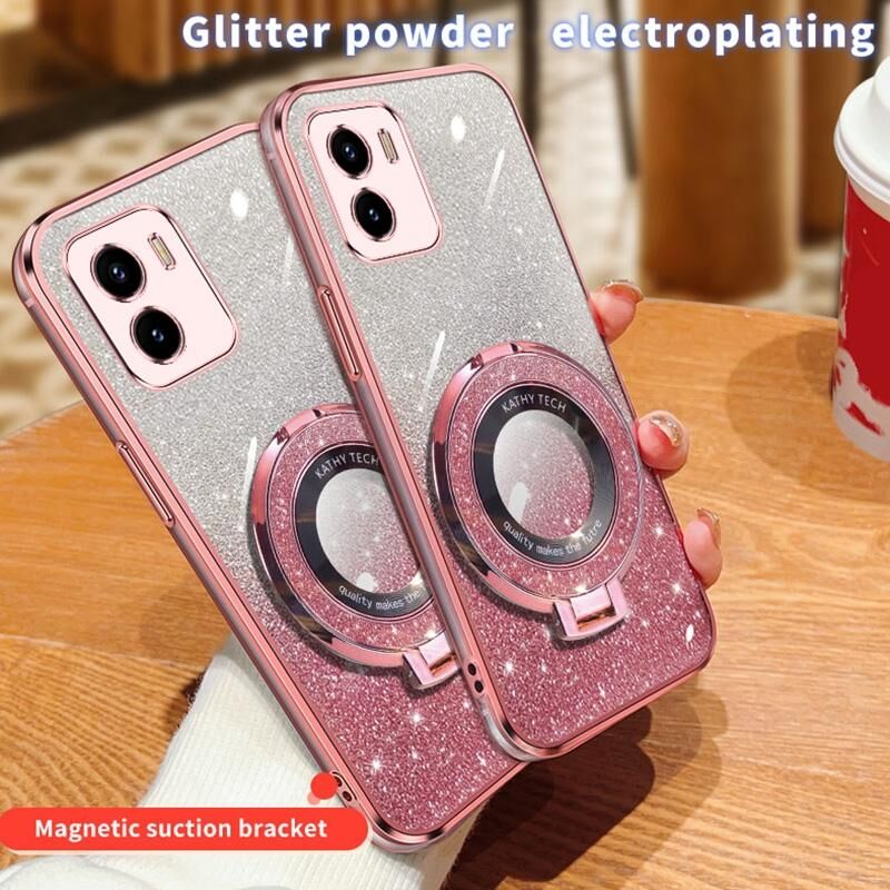 Θήκη τηλεφώνου TPU με στρογγυλό στήριγμα, επιμετάλλωση διαβαθμισμένης λάμψης για vivo Y10 / Y15s 2021 (Ροζ)