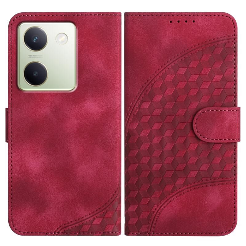 Θήκη δερμάτινη για vivo Y100 5G, παγκόσμια έκδοση, με ανάγλυφο σχέδιο κεφαλής ελέφαντα και κορδόνι (Ροζέ κόκκινο)